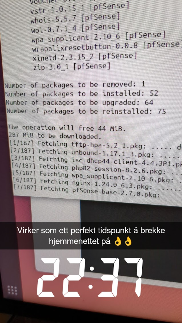 While debugging why the BGP announcements did not update anything on the PFsense box I managed to break the settings in a unrepairable fashion. In retrospect i was running pfsense 2.7.0.alpha, which well... never said it was stable. Funnily enough i was running the alpha as Dynamic DNS towards Namecheap was broken..
